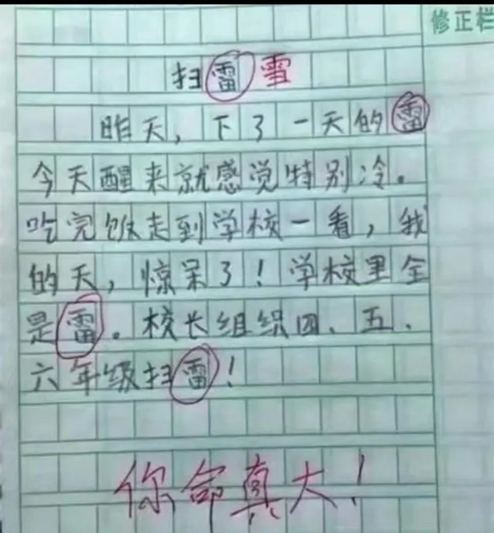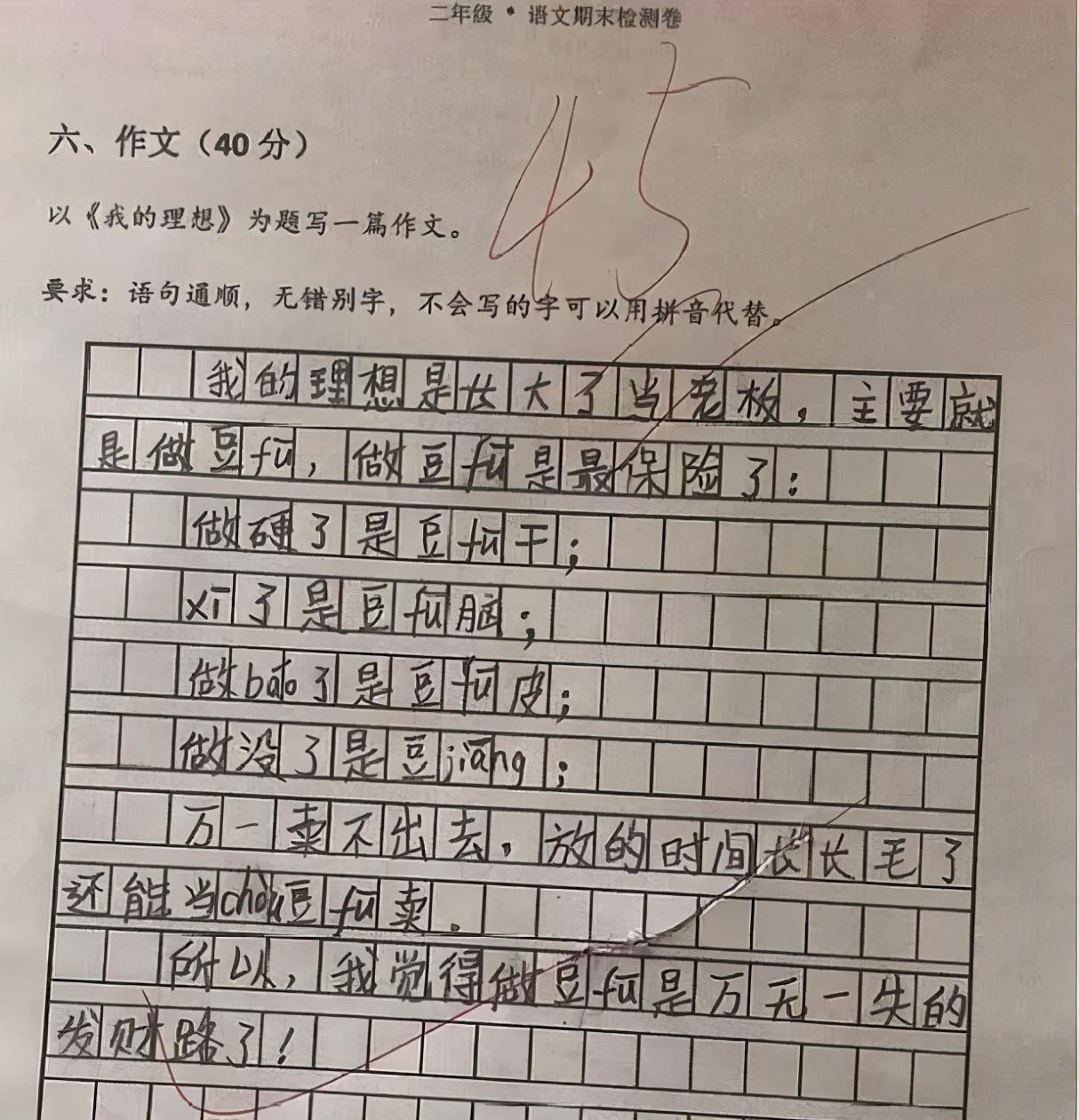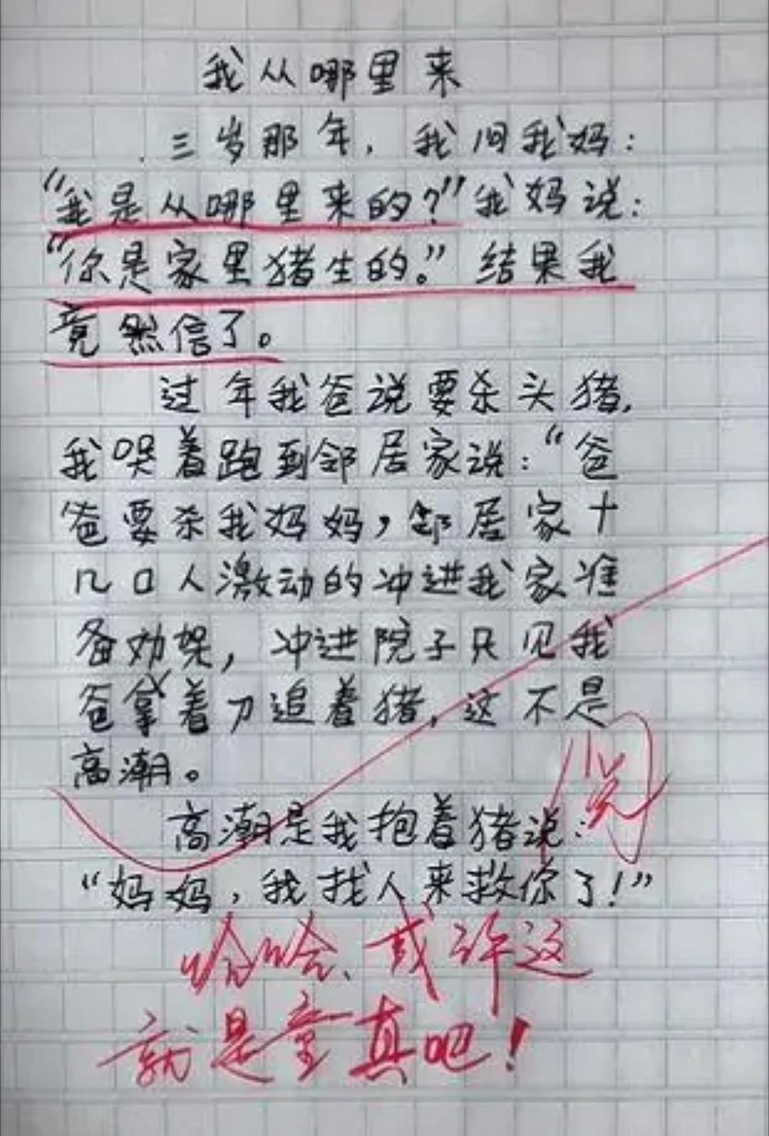 哈哈,拿纸是很正常的事情,但是被老师写了组成中的孩子。它充满了笑话。 ,老师看完直接说:你太好了,老师教不了你。