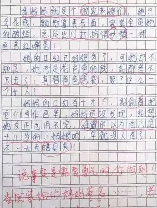 在网上,一位班主任在网上发布了一篇小学生的作文,我忍不住笑了 .这位小学生写的作文题目是《我的妈妈》,但内容太真实,让人印象深刻。